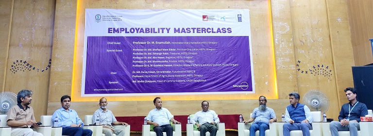 হাজী মোহাম্মদ দানেশ বিজ্ঞান ও প্রযুক্তি বিশ্ববিদ্যালয়ে (হাবিপ্রবি) শিক্ষার্থীদের কর্মদক্ষতা ও ক্যারিয়ার প্রস্তুতির লক্ষ্যে অনুষ্ঠিত হয়েছে ‘ফিউচারনেশন এমপ্লয়েবিলিটি মাস্টারক্লাস’। জাতিসংঘ উন্নয়ন কর্মসূচি (UNDP)-এর সহযোগিতায় আয়োজিত এই কর্মশালায় অংশ নেন বিশ্ববিদ্যালয়ের বিভিন্ন বিভাগের শতাধিক শিক্ষার্থী। শনিবার (১৮ অক্টোবর) সকাল ১০টায় বিশ্ববিদ্যালয়ের অডিটোরিয়াম-১-এ আয়োজিত অনুষ্ঠানে প্রধান অতিথি ছিলেন মাননীয় ভাইস-চ্যান্সেলর প্রফেসর ড. এম. এনামউল্যা। বিশেষ অতিথি হিসেবে উপস্থিত ছিলেন প্রো-ভাইস-চ্যান্সেলর প্রফেসর ড. শফিকুল ইসলাম শিকদার, রেজিস্ট্রার প্রফেসর ড. মো. আবু হাসান, প্রক্টর প্রফেসর ড. মো. শামসুজ্জোহা এবং ছাত্র পরামর্শ ও নির্দেশনা বিভাগের পরিচালক প্রফেসর ড. এস. এম. এমদাদুল হাসান। সভাপতিত্ব করেন ফিউচারনেশন হাবিপ্রবি শাখার কো-অর্ডিনেটর এগ্রিকালচারাল এক্সটেনশন বিভাগের প্রফেসর ড. মো. ফারুক হাসান। কর্মশালায় মূল বক্তা হিসেবে উপস্থিত ছিলেন UNDP বাংলাদেশের হেড অব কমিউনিকেশন মো. আবদুল কাইয়ুম। তিনি শিক্ষার্থীদের দক্ষতা উন্নয়ন, আত্মবিশ্বাস গঠন এবং চাকরির বাজারে প্রস্তুতির বিষয়ে দিকনির্দেশনা প্রদান করেন।