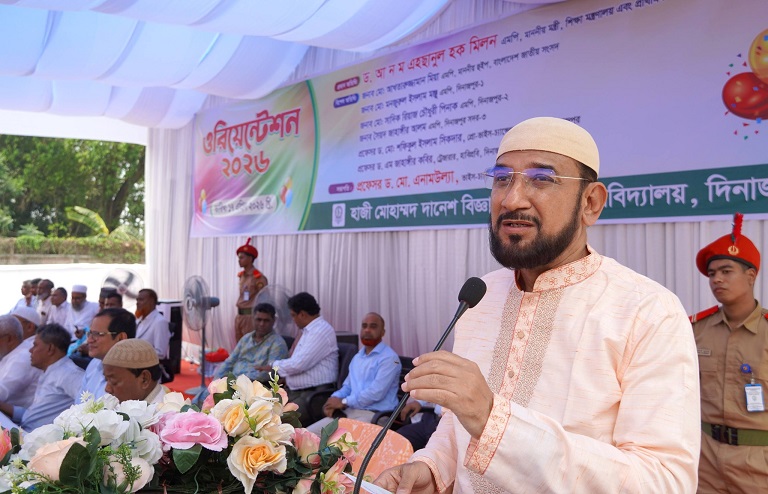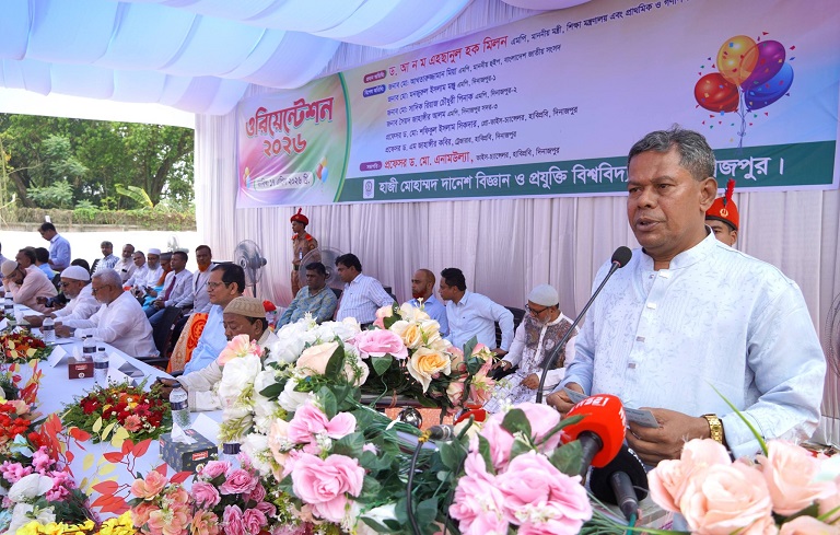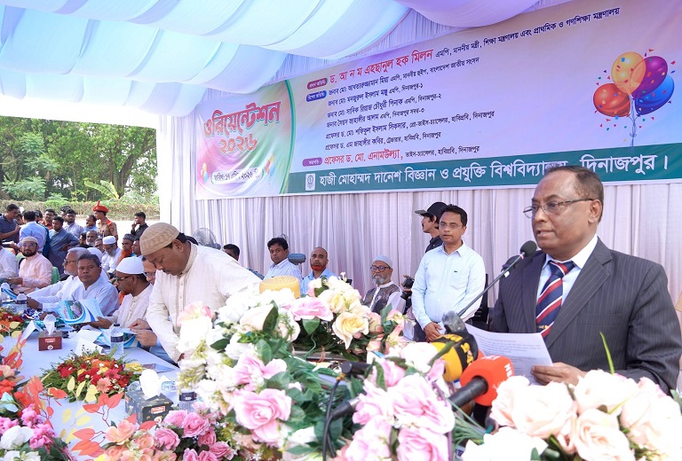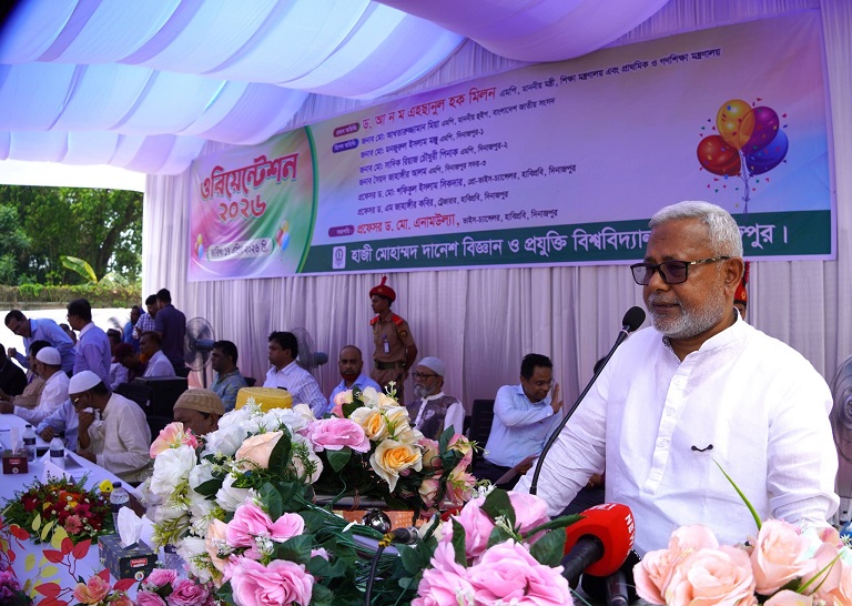 হাজী মোহাম্মদ দানেশ বিজ্ঞান ও প্রযুক্তি বিশ্ববিদ্যালয়ে (হাবিপ্রবি) ২০২৬ শিক্ষাবর্ষের স্নাতক পর্যায়ের লেভেল-১, সেমিস্টার-১ এ ভর্তিকৃত শিক্ষার্থীদের ওরিয়েন্টেশন অনুষ্ঠিত হয়েছে। শুক্রবার (১৭ এপ্রিল ২০২৬) সকাল ১১টায় বিশ্ববিদ্যালয়ের শহীদ নূর হোসেন হল সংলগ্ন মাঠে উক্ত অনুষ্ঠানের আয়োজন করা হয়। এতে প্রধান অতিথি হিসেবে উপস্থিত ছিলেন গণপ্রজাতন্ত্রী বাংলাদেশ সরকারের শিক্ষা মন্ত্রণালয় এবং প্রাথমিক ও গণশিক্ষা মন্ত্রণালয়ের মাননীয় মন্ত্রী ড. আ ন ম এহছানুল হক মিলন এমপি।